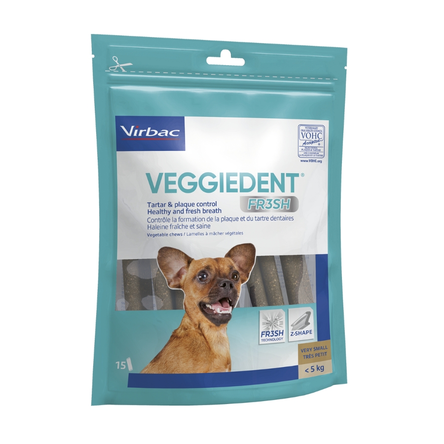 VIRBAC VeggieDent FR3SH Dental Chews for Dogs, XS, 15 chews, 114g