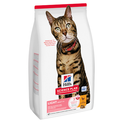Hill's Science Plan Light Adult Dry Cat Food with Chicken מספק תזונה מאוזנת ובריאה ב-100%.